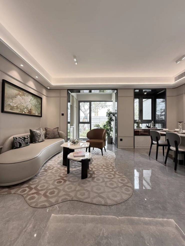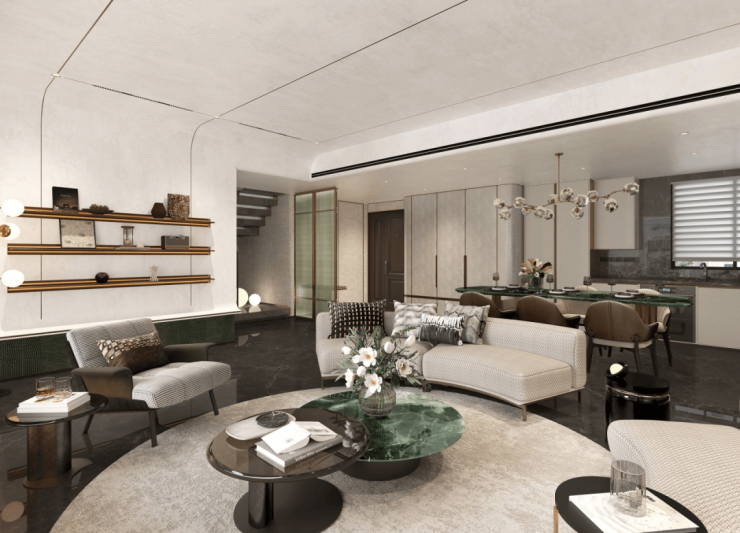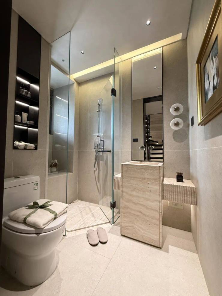 立面腰线等细节处则提炼汝窑“金线”传奇符号,以还原精雅的繁复工艺,为建筑线条进行金线勾边,点睛强烈而隽永的美学仪式感;较高的窗墙比延伸视野边界的同时,呈现极简派超高颜值…诸如此类的精工细节不胜枚举,真正做到了坚持骨子里东方文化标签,用现代材料与传统技法相结合,打造出符合现代审美需求的高质人居产品。