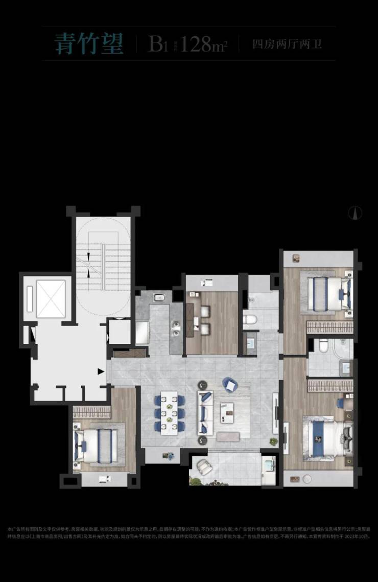 建面约128㎡的四房设计,在空间上使用功能更加扁平化,一站式解决了家庭生活的所有功能,优化居家动线,大大提升空间的居住体验。