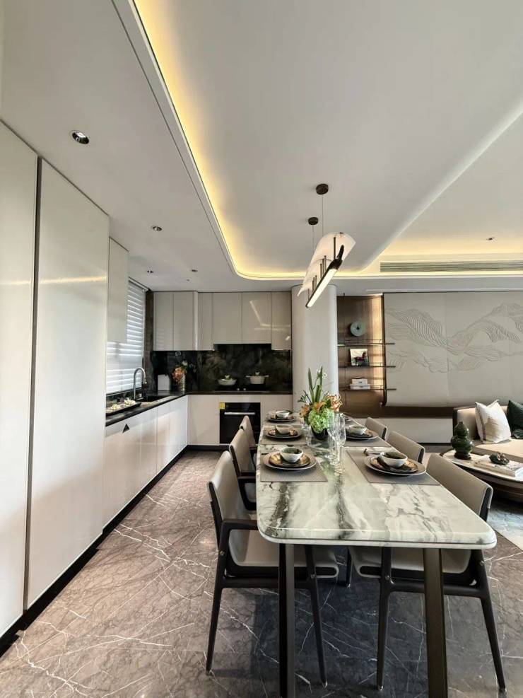 南向大横厅,用光线阐述空间的舒适度与高级感,U型中厨搭配多功能开放西厨,满足世界级美食品位。