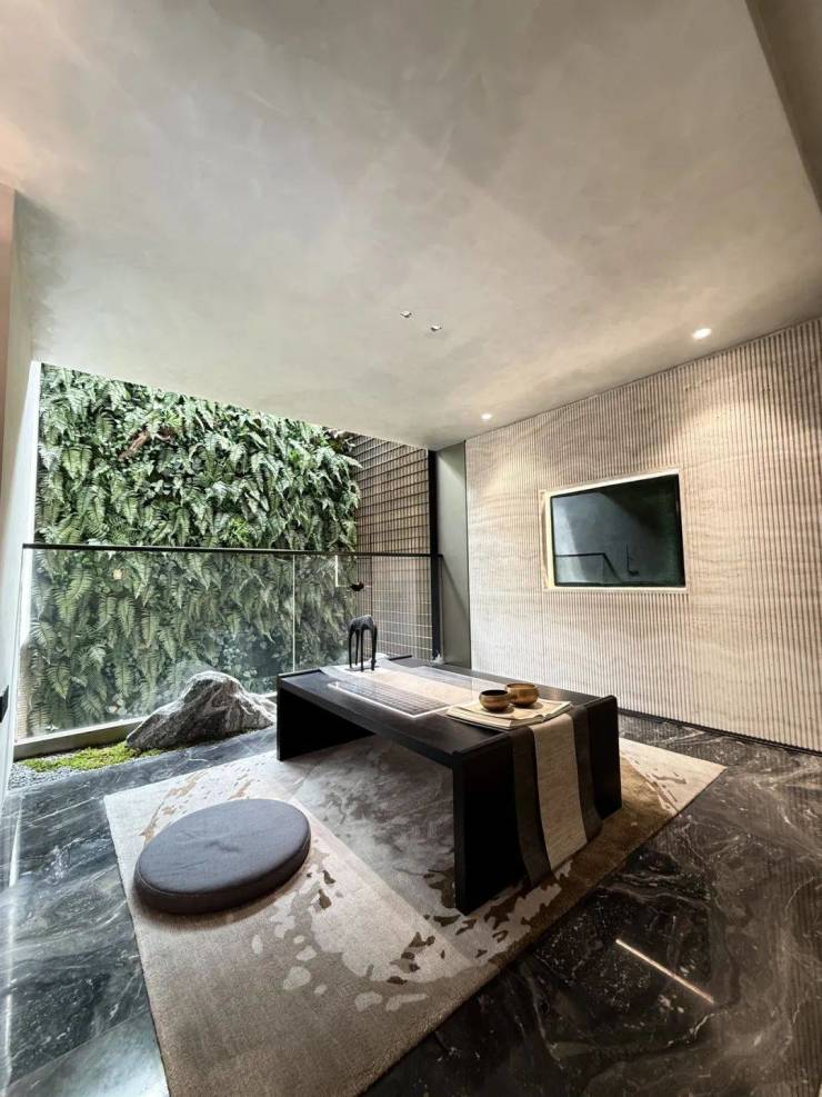 三进【青雅叙】,致敬宾客的东方雅集场景。高定全龄会所,不仅集萃恒温泳池、运动健身房等公共空间,并将东方四雅“点茶、焚香、插花、挂画”的雅致场景也融入其中,缔造了人们共享的社交主场。