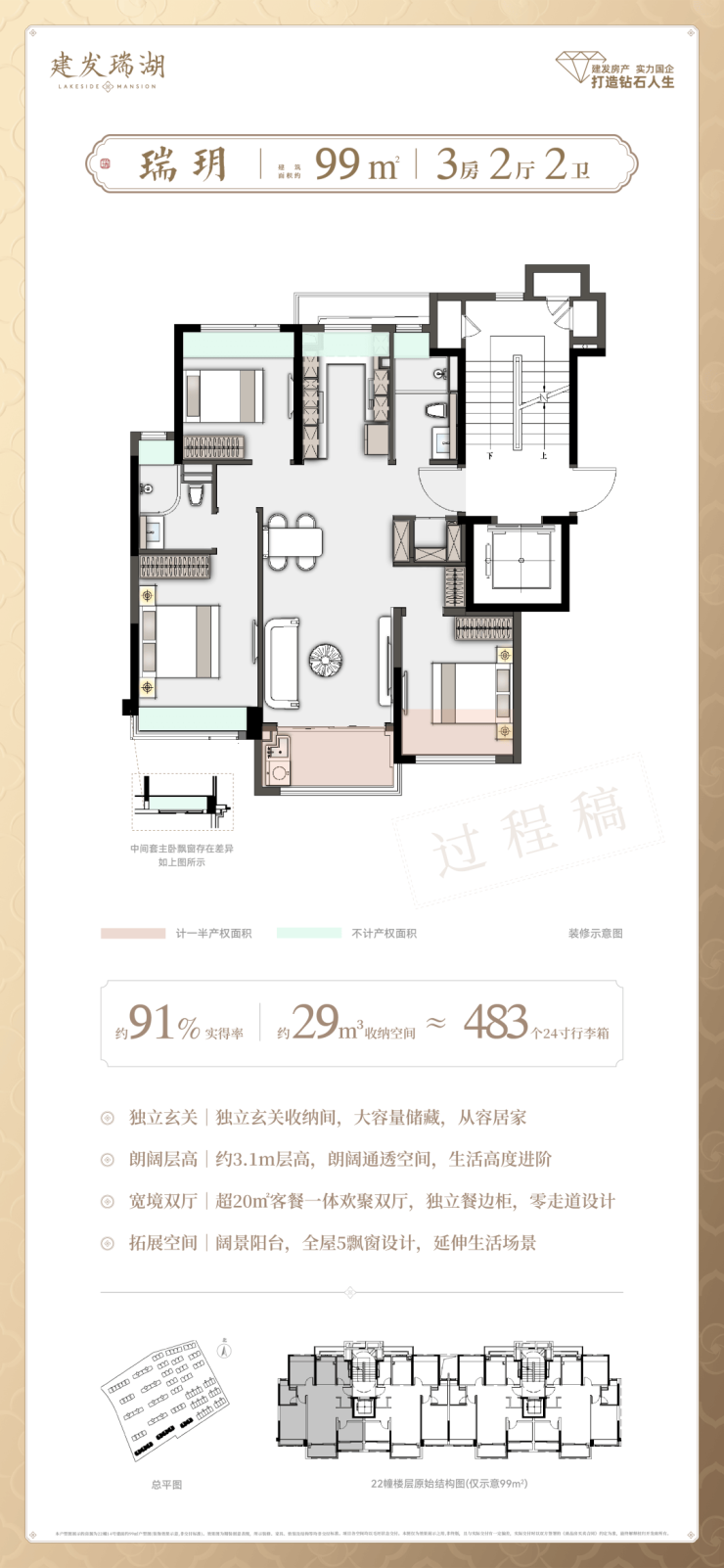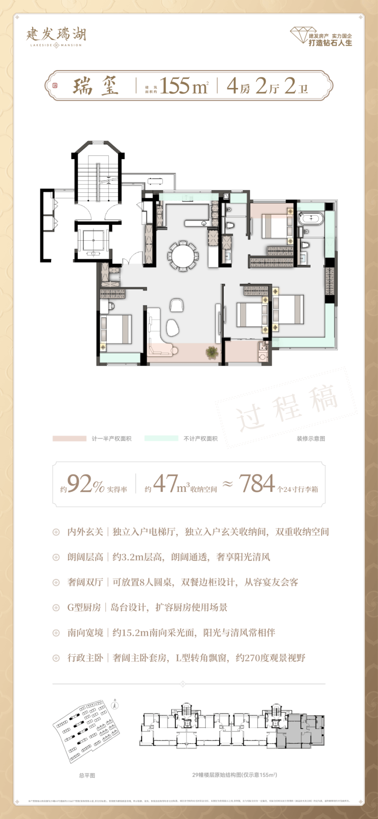 1.25超低容积率,淬炼出建发·瑞湖建面约185-205㎡藏品叠墅、建面约255-308㎡传世联排产品形态。