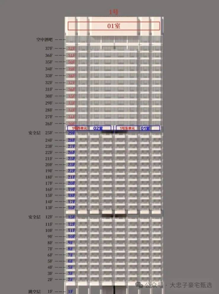 2号楼:总高40层363平(平层)、619平(复式)