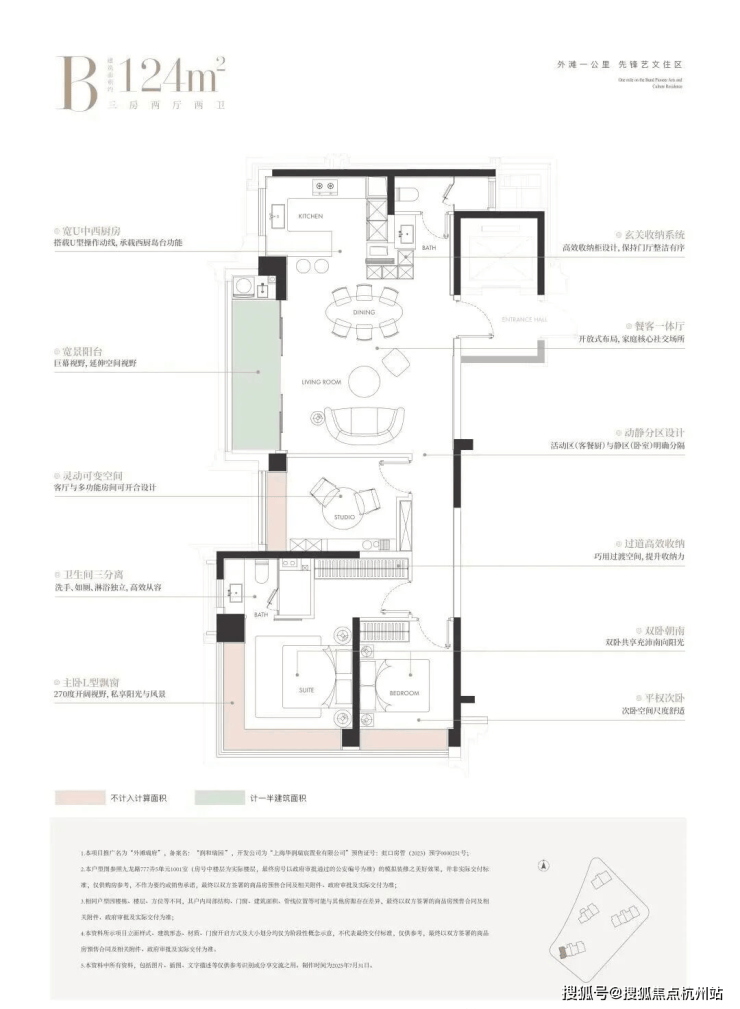建面约124㎡3房 总价约1600-1900万