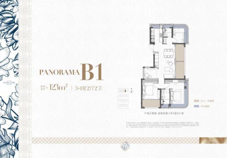 在售户型面积:建面约108㎡三房两厅两卫、123㎡“3+1”四房两厅两卫