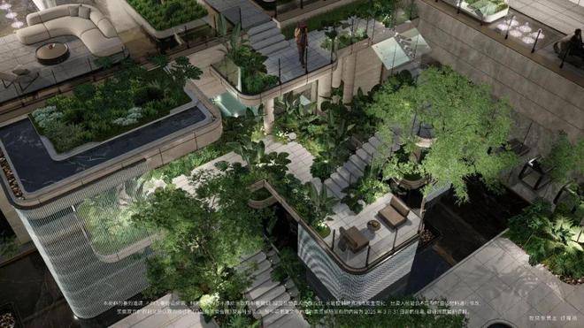 社区景观方面,项目运用室内手法室外化设计构想,将垂直景墙、悬浮观景台与叠水景观立体穿插,极具立体感,并随时拾获国际范与奢华体验。