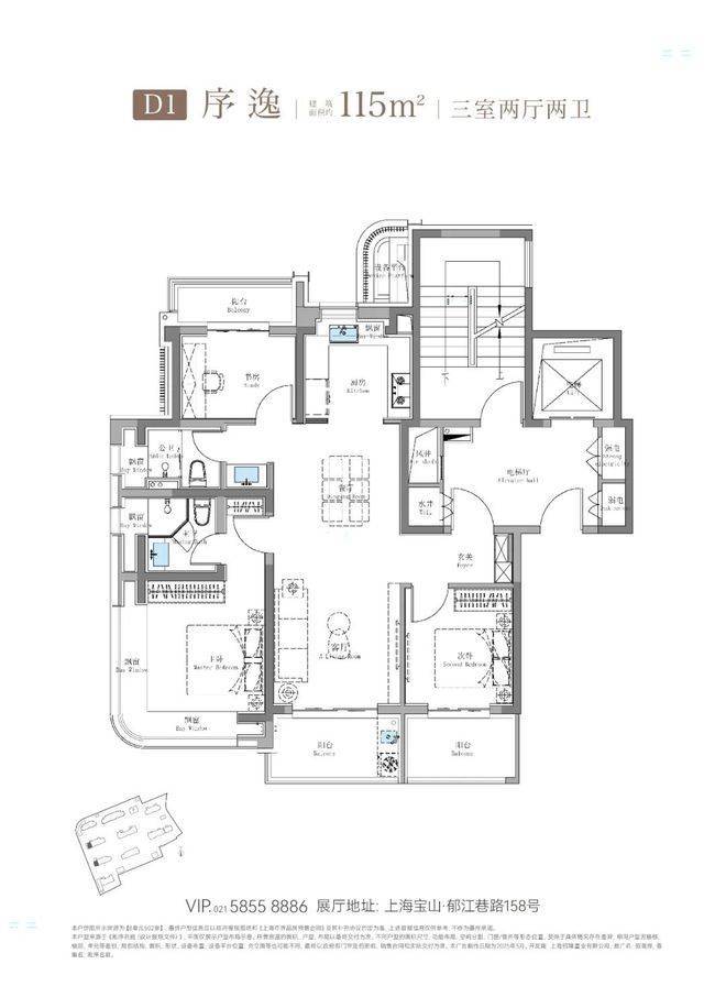 建面约115㎡3房2卫只有二期才会有
