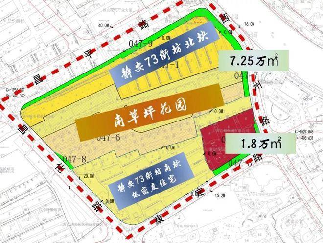 静安73街坊项目共分为南北两个地块,中间被现有的住宅隔开。