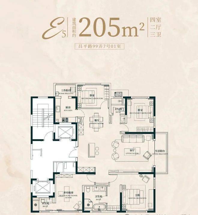 格局上非常正气,是市面更受欢迎的飞机户型,南北通透+三开间朝南,保证了充足采光和优秀的通风效果。豪华套房主卧则保证了业主超高的居住舒适度。