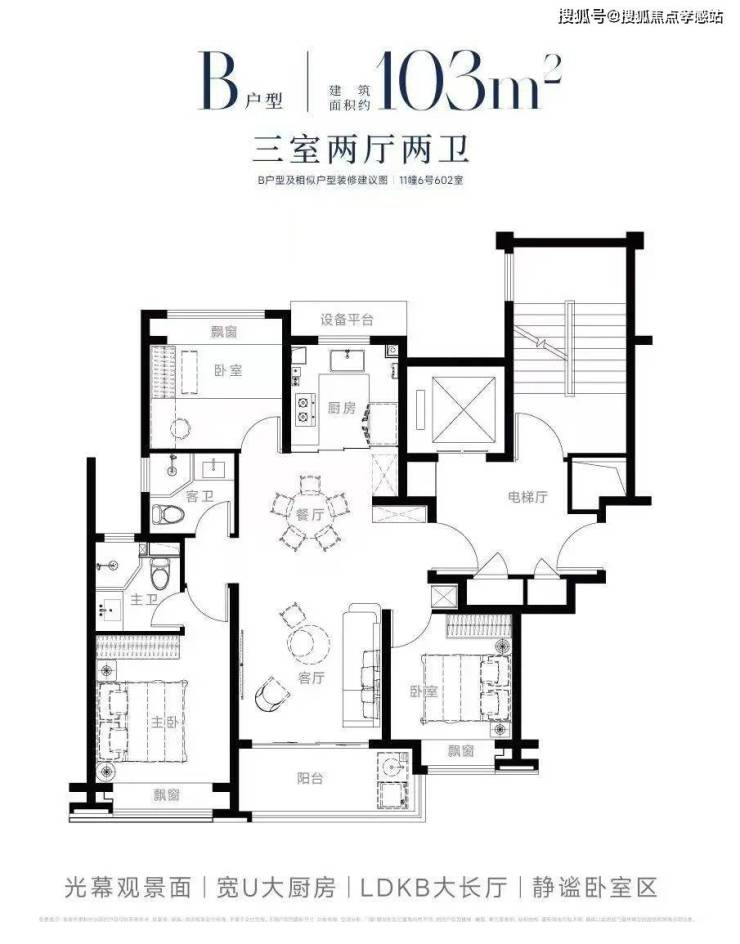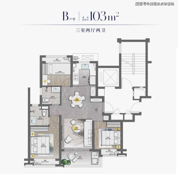 其中,建面约103-105㎡的房源算是项目的王牌产品了,在同级别的百平米3房中堪称少有对手。