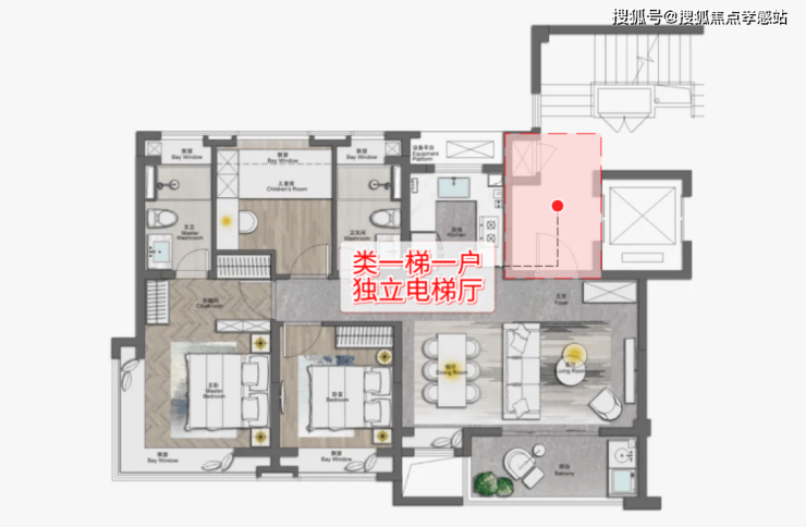 第三,建面约110㎡3房是类一梯一户的居住体验,享受独立电梯厅!