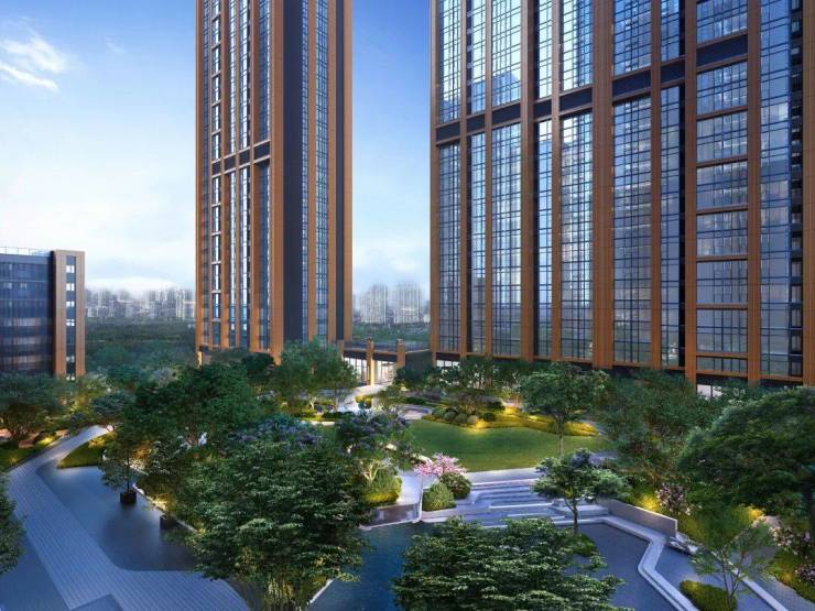超高层住宅建筑由天华建筑负责设计,三栋超高层住宅以错落有致的方式排列, 最大楼间距达到了约75米+,为业主提供了充足的采光和欣赏城市美景的绝佳视野。