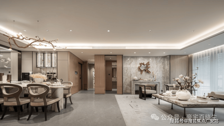 宽厨房与一体化共享空间:与客餐厅等宽的厨房,解决了豪宅往往觉得厨房过于局促的问题。这样的厨房,不再仅仅是功能化空间,而是与岛台一起组合成家庭厨师长的个人秀场。