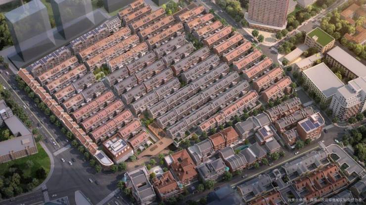 基于“源于里弄,高于里弄”的创作理念,社区内既有原址修缮的石库门里弄,也有创新设计的现代院落,清水砖墙与坡屋顶勾勒出百年海派的天际线。