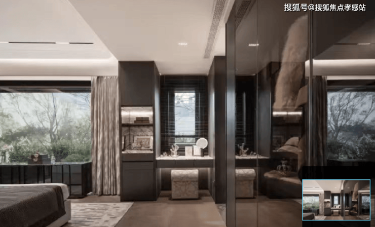 亮点一:270度环幕飘窗,通透主卧套房,对于卧室而言,常规的尺度延扩,不足以称为迭新。映江润府,103边套户型,引入了千万级以上豪宅之中才能够拥有的270度环幕飘窗设计,实现了极致的采光和观景体验。