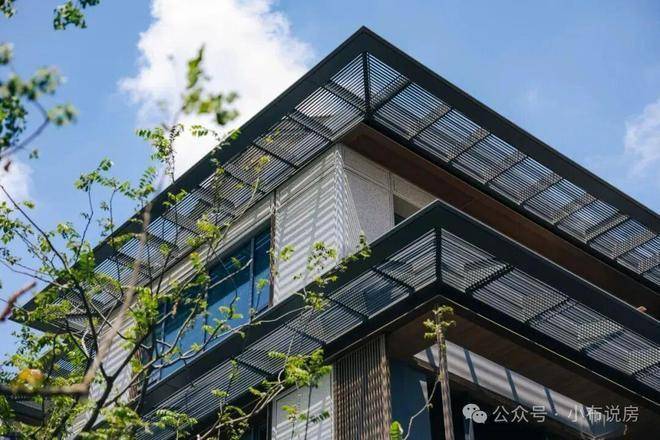 它也采用多见于豪宅新盘的风雨连廊,打造风雨无阻的归家体验的同时。风雨连廊的造型与景观巧妙呼应,别有意趣。