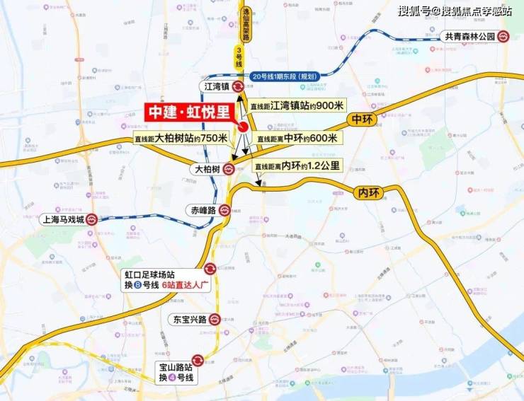 轨交配套:⛈✨中建虹悦里售楼处☎☎:400-8787-740✨直线距离3号线大柏树站约750米,直线距离江湾镇站均约900米,步行可及。3号线也是多年才出一个轨交房。畅联中山公园/延安西路;三重高架:临近中环高架/逸仙高架及大柏树立交,迅捷衔接五角场/大宁等地;干道交通:周边汇聚逸仙路/汶水路/中山北路等城市主干道,便捷抵达全城。