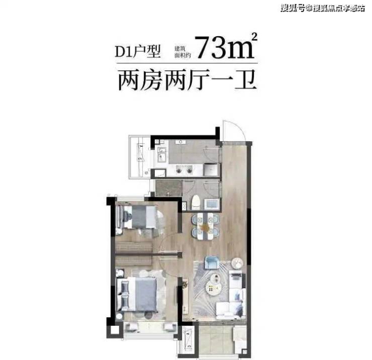 约73㎡ |2房2厅1卫(得房率约76%)