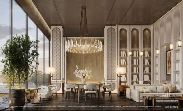 项目同步打造独具海派审美的滨水下沉式会客厅,集健身、休闲、阅读等多重功能于一身,旨为圈层邻里对标还原出隐奢度假酒店的沉浸式体验。