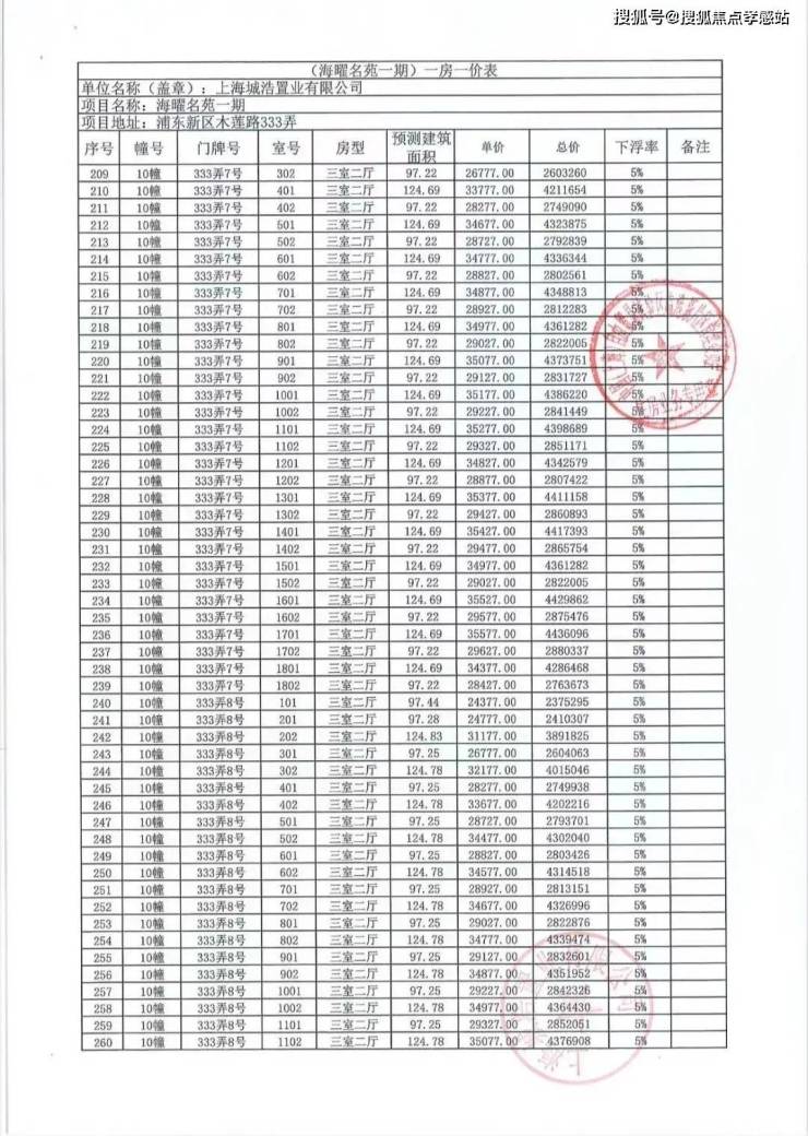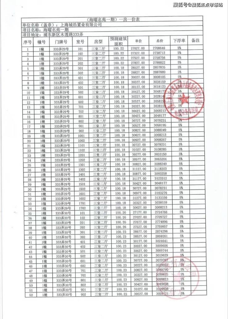 一房一价表