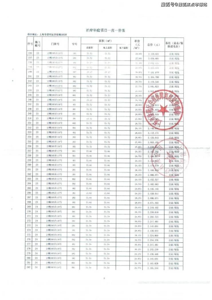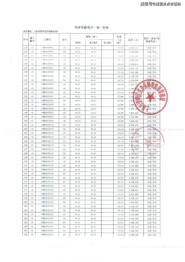 一房一价表