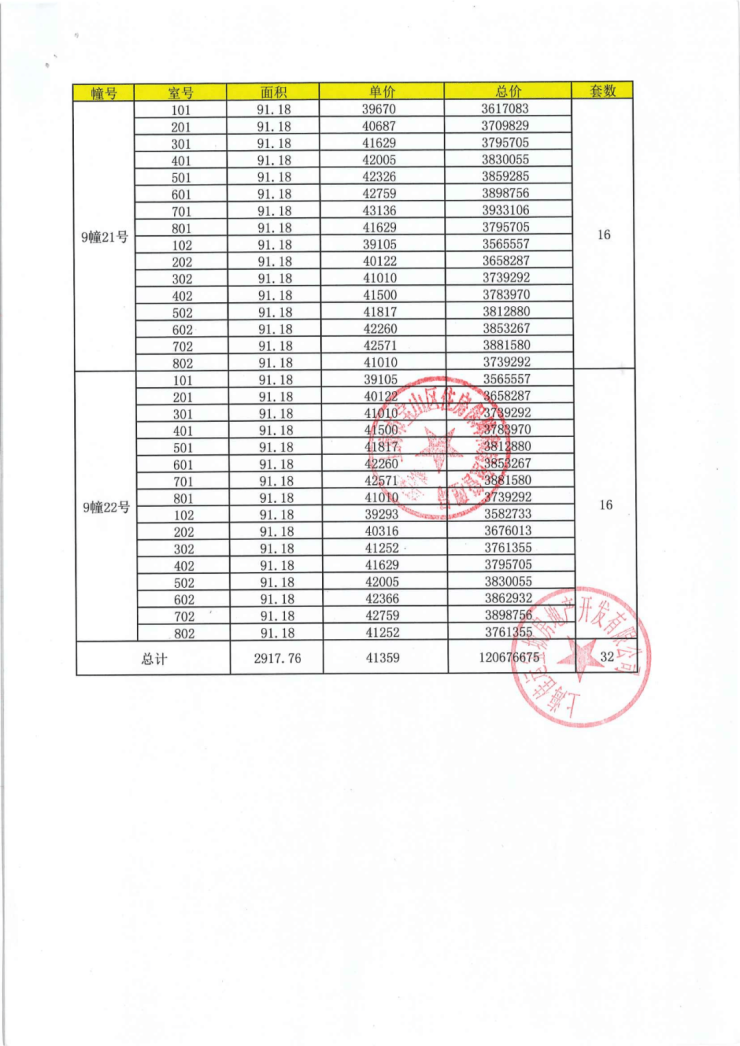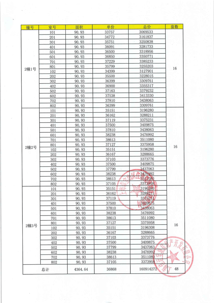 项目一房一价表