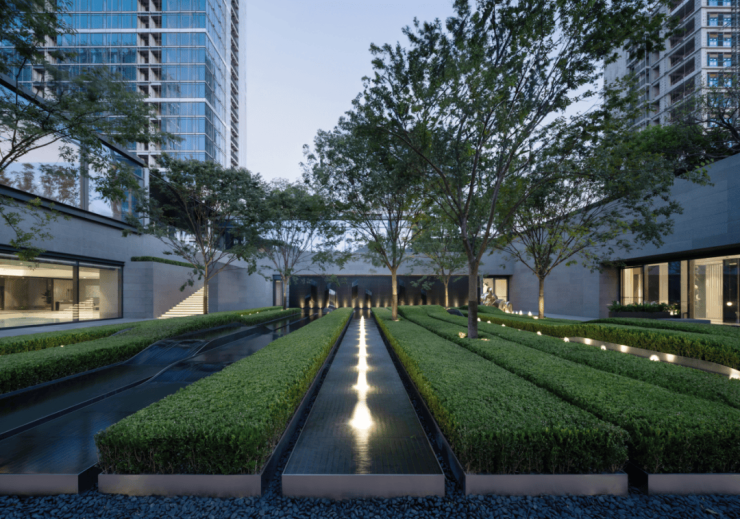双重花园奏鸣:探寻上海经典花园联列住宅形制;延续里弄肌理,赋新花园记忆,以浓荫巷陌、南北院落的双重花园体系,层层递进的讲述着关于花园的惬逸故事,犹如一首诗歌协奏,重现高端居所的隐逸风貌。