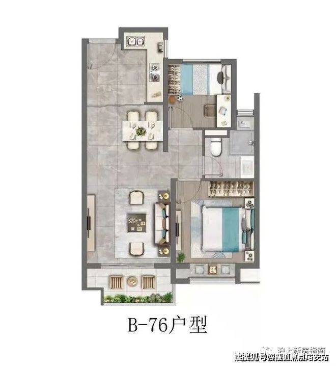 建面约76㎡2房2厅1卫️
