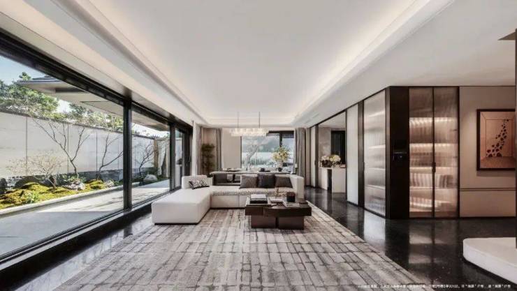 【院墅会客空间】 约31㎡阔尺餐客厅,搭配约7米宽全景落地窗,实现庭院景观与室内生活的无界对话,每一场宴聚皆成风景