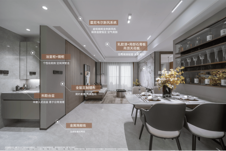 精奢品质—美妆冰箱(主卫)、除臭精灵、主卫卫洗丽、净水器、360°抽拉龙头(厨房)等,予日常人性化关照;