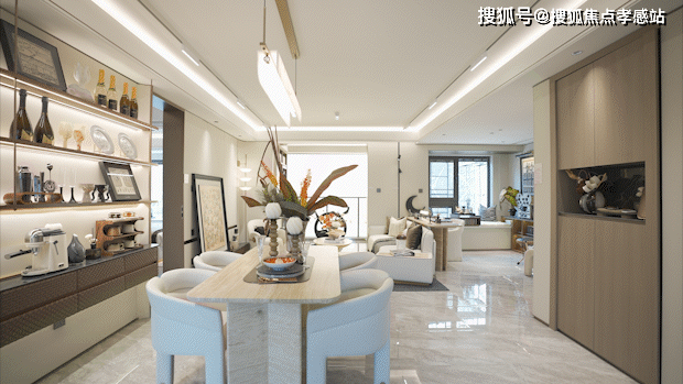 餐厅空间相当阔绰,可放置四人桌或六人桌,尺度之大在400万左右产品中非常难得一见。
