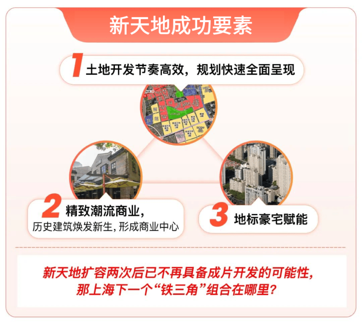 如此类比,是有充分信心的。新天地的成功主要依赖三要素:地标豪宅、精致潮流商业及合理的土地开发节奏。