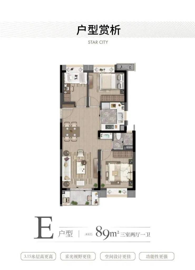 产品介绍:建面约72-89㎡两房到三房