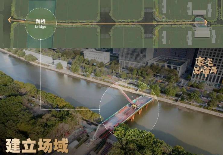 项目地块实景图,距离琶洲会展仅一桥之隔,直线距离约400m。
