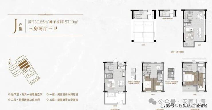一楼和地下室主社交和志趣,二楼是子女的房间,三楼是主人休憩区