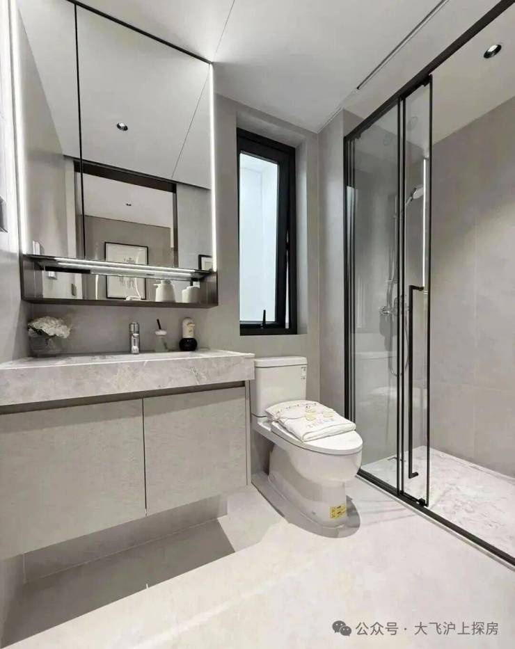 主卫智能一体马桶、顶喷花洒等配置齐全,玄关柜整体交付,诠释有温度的精致人居,更多细节就留待各位现场发掘。