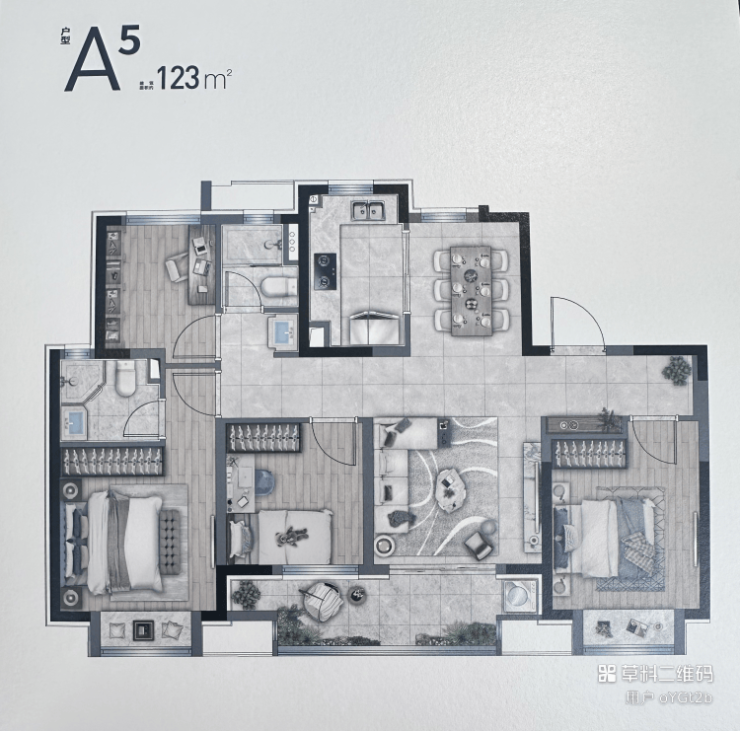建面约123㎡的4房2厅2卫户型,超大面宽南向阳台、整体南北通透、主卧套房的设计,提升居住空间。