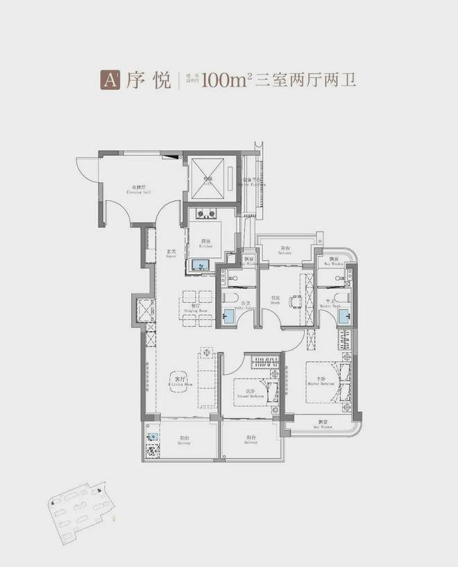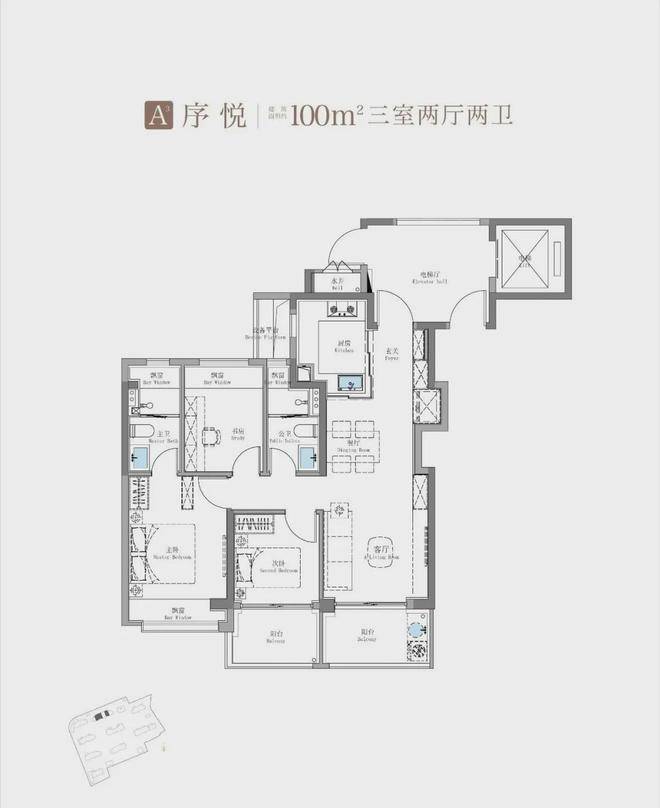 建面约115㎡3房2卫只有二期才会有