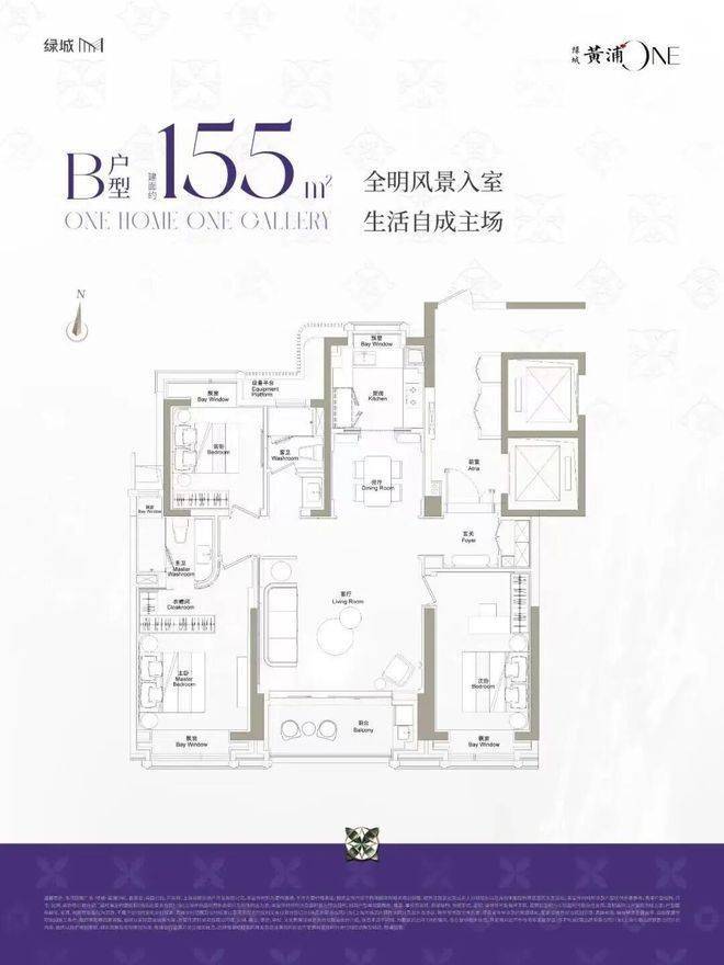 上海绿城黄浦ONE售楼处电话☎:400-8787-740(预约看房热线)中间套是155平的3房2厅2卫,采用最标准的3开间朝南飞机户型,重点是户内装标确实蛮顶的,玄关铺设鱼肚印象奢石,客厅背景墙采用意大利超白洞,卫生间台面和墙面采用芬迪白,地面铺设巴西进口静雅棕石材。