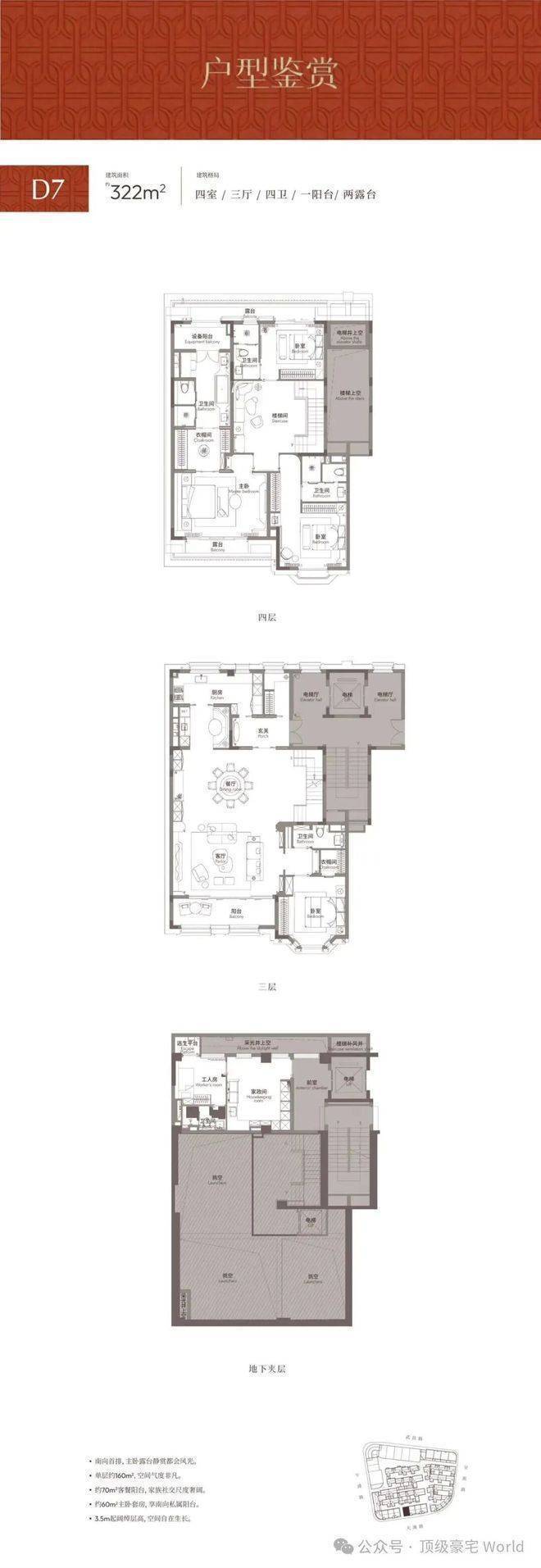 南向客厅灵动分区,双采光庭院引光入室,多卫设计便捷舒适。