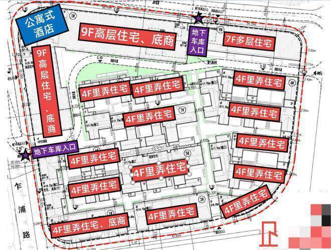 规划有8幢4层里弄住宅,1幢7层多层住宅,1幢9层小高层,及底商和酒店;