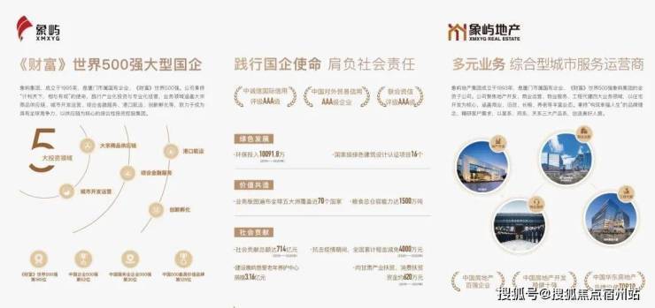 象屿地产集团成立于1993年,是厦门市属国有企业、《财富》世界500强 象屿集团 的全资子公司。公司聚焦地产开发、商业运营、物业服务、工程代建四大业务领域,以住宅开发为核心,涵盖商业、旧改、长租、养老等丰富业态。秉持“构筑幸福人生“的品牌理念”,致力于打造受人尊敬的综合型城市服务运营商。公司连续多年获评“中国房地产百强企业”、“中国房地产开发稳健经营10强”、“中国华东房地产品牌价值TOP10”。