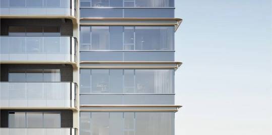 中环云悦府的建筑外立面独具匠心,一二层基座部分为石材,三层及以上主体部分以玻璃 + 铝板幕墙为主,配以香槟金色线条,既现代又不失温暖感。窗墙比控制在0.35 - 0.4的黄金区间,既保证了通透性,又兼顾了保温性能。