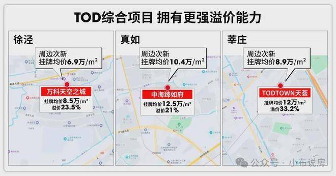 溢价能力:相比普通楼盘,TOD综合项目本身更有溢价,也更保值,像莘庄天荟、万科天空之城等都已给出了更有说服力的结论。
