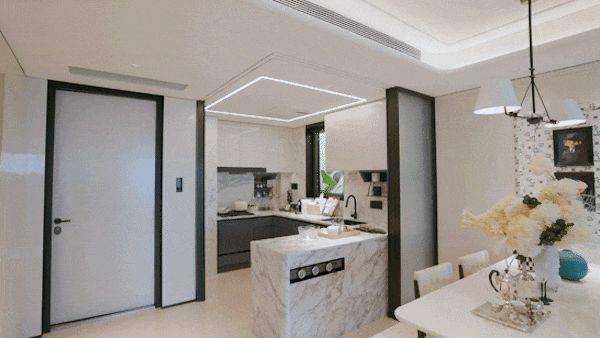 厨房排烟系统通过嘉格纳大风量油烟机、大金空调双重滤网及中央排烟系统三重保障,解决油烟困扰。照明采用Ra≥90显色指数灯具与灯带,还原食材本色;静音设计涵盖低噪厨电、同层排水、缓冲阻尼及中央排烟降噪技术,营造安静烹饪环境。