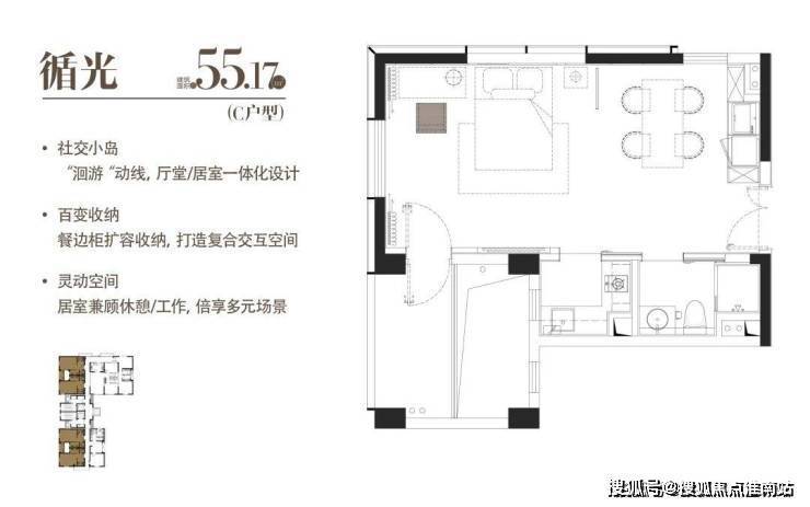 C|循光|建面约55.17m²|一室一厅一厨一卫