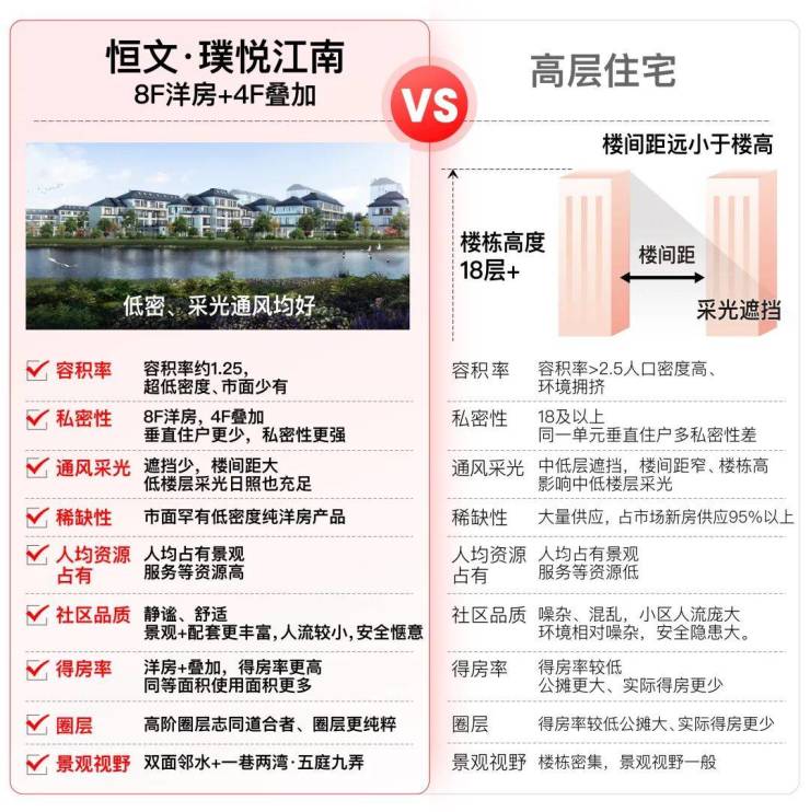 ⑤用青浦新城高层的价格就能在恒文璞悦江南买叠加别墅,居住舒适度天差地别。
