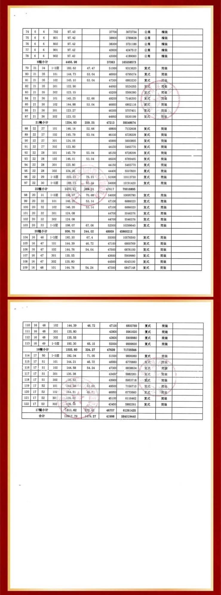 一房一价如下: