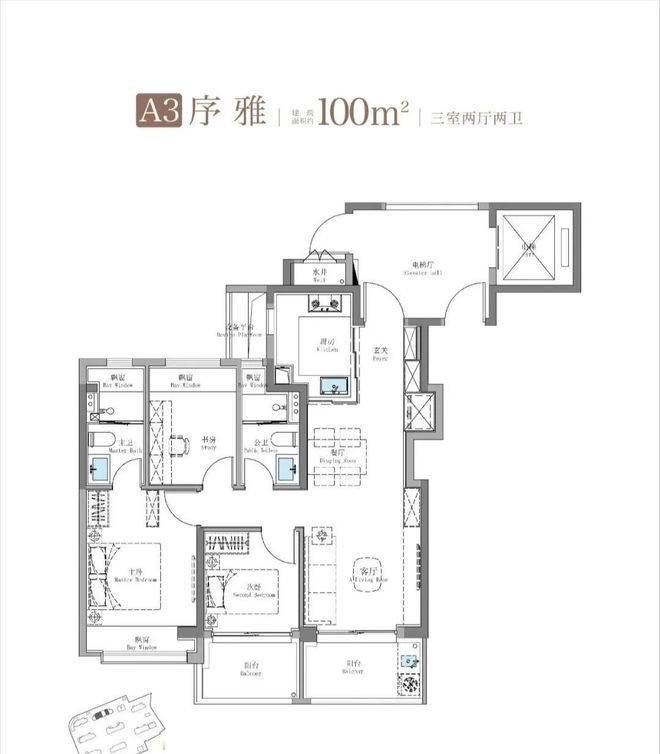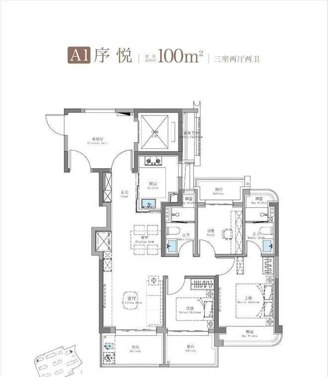 其中建面约115㎡鲲鹏阁三房户型是上海此前未见的全新王炸级产品