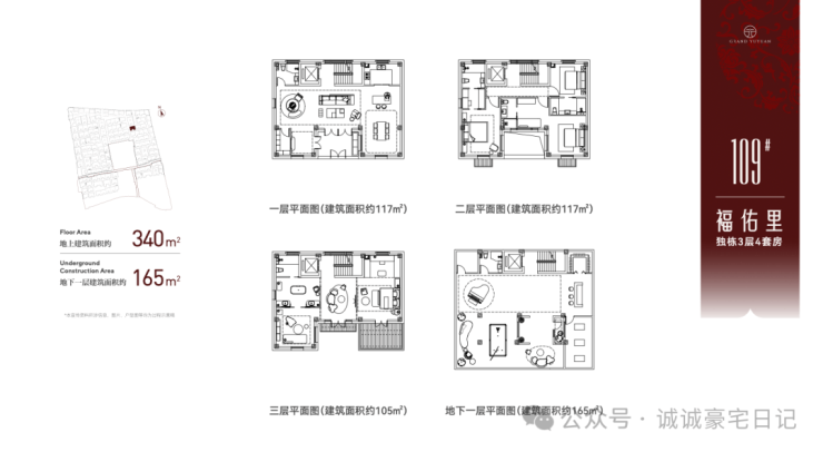 地上建筑面积约340㎡户型,地下一层建筑面积约165㎡。