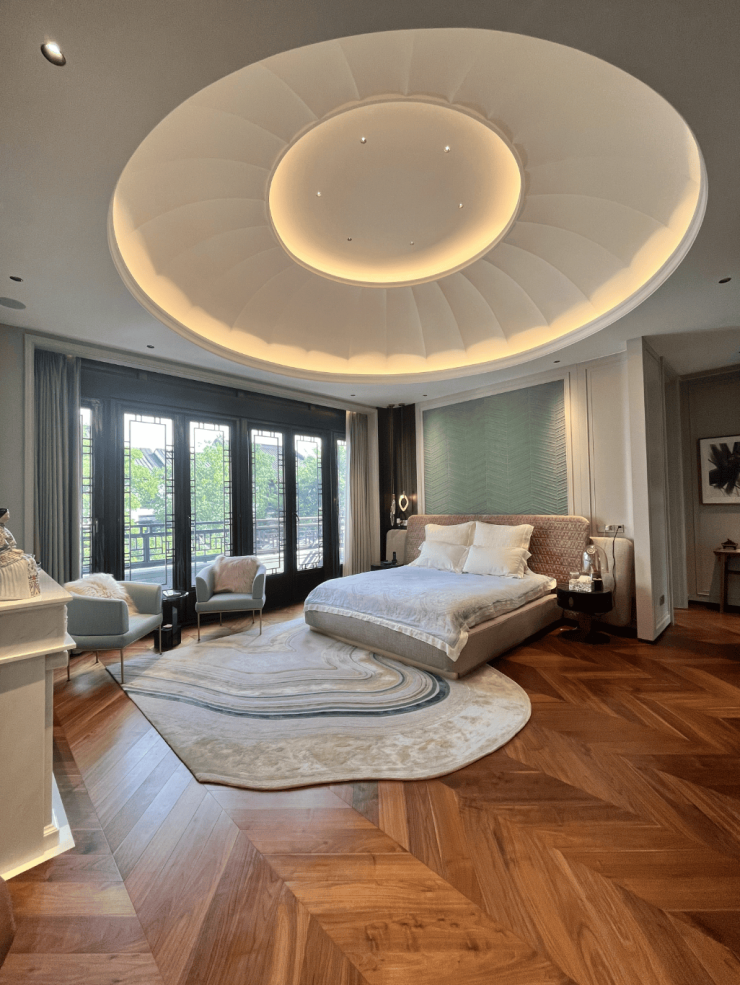 「上海桃花源」汲取了中国园林的真正精髓,还原上海地理特色的江南园林为建筑形式,以符合上海城市恢弘气度的皇家园林为布局规制,形成了特有的“南形北制”的规划特征,并且运用了罕见的纯中式古典建筑风格,取古建礼制,采非遗技艺,结手工定制,将藏品级中式大宅与园林融为一体!
